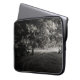 A black and white laptop sleeve featuring a calm winter forest landscape design. The monochrome nature-inspired artwork adds a unique and minimalist touch to everyday tech accessories while helping protect your laptop during travel or daily use. This design is also part of the coordinated workspace collection “B&W: Gaming Sets – Mats, Pads & Laptop Sleeves”, where you can find matching desk mats and mouse pads with the same artwork to create a cohesive black and white setup.