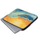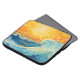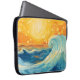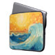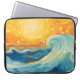 Bolsa de laptop mostrando uma bela pintura litorânea de óleo de um pôr do sol ouro e ondas azuis vibrantes, perfeita para adicionar um toque de serenidade costeira à sua proteção técnica diária.