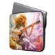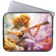 A decorative laptop bag with a somber picture of a young girl strumming her guitar, under a stormy sky.