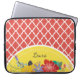 Um padrão de quatrefoil vermelho fiesta de 15'', bolsa de laptop decorada com flores coloridas de verão. Personalize este design floral floral que chama atenção acrescentando o nome de qualquer jovem vibrante.