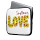 Decorate your electronics gear with this eye-catching sunflower "love" laptop bag. This design prominently incorporates vivid amber elements. Express yourself by experimenting with different background colors and added text.