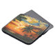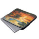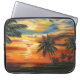"Stunning Tropical Sunset II", por Carolee Vitaletti. Possui um pôr do sol contra árvores e água na praia.