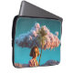 Woman with short blonde hair and round glasses, wearing a pink blazer and smoking a cigarette. She stands next to a tall palm tree. Behind her is a large, fluffy cloud with pink and gray hues against a teal sky. The ground appears to be a rocky, mountainous terrain. The overall mood is surreal and dreamlike.