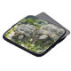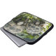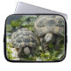 Duas tartarugas (mãe e bebê) entre as folhas verdes.
