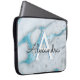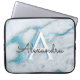 Mala de Laptop de Teal Azul e Mármore Branco Moderno e Elegante. Esse caso pode ser personalizado para incluir seu nome inicial e próprio. Se você quiser combinar itens, contate o designer.