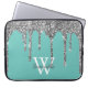 Capa Para Notebook Teal Silver Glitter Drives Sparkle Monograma Nome