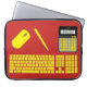Este gabinete de Laptop incomum e peculiar apresenta um teclado de computador com teclas amarelas e letras vermelhas, um mouse amarelo, uma calculadora com teclas amarelas e letras vermelhas e caneta amarela. O texto em segundo plano e nameplate pode ser alterado para atender às suas necessidades. Designs por KPW_Graphics.