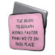 Texto que diz com humor "O telégrafo de bush funciona mais rápido que o Wi-Fi neste lugar". "Bush telegraph" é uma gíria australiana para a rede de fofocas, o que implica que a comunicação é mais eficaz do que a internet.