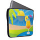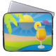Um copo de cocktail de tequila sunrise num fundo de praia tropical. Fundo removível.