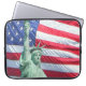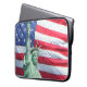 Um design patriótico com símbolos da liberdade dos EUA: a Estátua da Liberdade e a Bandeira dos EUA.