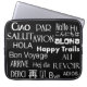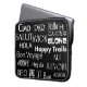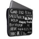 Teste padrão de cumprimentos e de saudações globais, e provérbios para viajantes em cores preto e branco.