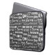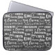 bolsa de laptop legal de cinza mole impressa com um padrão tipográfico de palavras associadas à jogada de xadrez. Incluindo Cavaleiro, Rei, Rainha, Peão, Xeque-mate, Bishop e Rook. Ideal para o jogador de xadrez na sua vida.