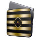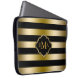 Capa Para Notebook Tons Dourados monogramados e padrão de faixas pret