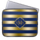 Capa Para Notebook Tons Dourados Monogramados e Padrão de Stripes Azu