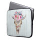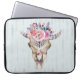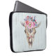 Capa Para Notebook Touro Floral Crânio Sobre Fundo Azul Claro