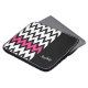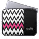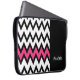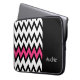Faça uma declaração de moda com esta bolsa de laptop geométrica de 15 polegadas com um padrão chevron preto e branco em negrito e uma faixa rosa-quente. Personalize este chic e na moda design, acrescentando o nome de qualquer garota feminina.