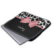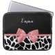 Uma bolsa de laptop de girafa branca e preta, com uma fita rosa giratória rosada e giratória, amarrada em um arco giro. Personalize este elegante design de impressão animal adicionando seu nome. Imagem impressa plana, não arco real.