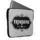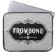Trombone em texto decorativo contra um emblema branco ou preto é um design de presente único para músicos de baixo nível, professores de música e estudantes em concertos, jazz e bandas de marchar.