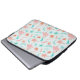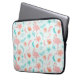 Esse bonito laptop apresenta um padrão tropical de flamingos cor-de-rosa e flores de hibisco em fundo branco. As cores são principalmente cor-de-coral rosa, lacrimejante e branca.