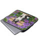 Capa Para Notebook Tuxedo gato sentado numa cadeira de jardim com flo