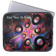Uma imagem fractal multicolorida com muitos toroides de espaço negativo em um fundo estrelado.
