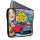 Uma imagem detalhada do desenho do grafite. Contexto conceitual de arte de rua com personagens de desenho animados, uma menina retrô, um focinho de gato mau, grafite de cartas, cachorro-quente, dados e uma arte vermelha de carro-abaixador, rua, parede, fundo, carro, urbano, incrível, retro, desenho animado, cidade, abaixador, padrão, menina, cor, desenho, estilo, tatuagem, fundo, gato, personagem, vintage, ilustração, retrô,
