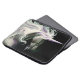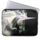 Perfil de um unicórnio branco com roxo no homem num pano de fundo de preto