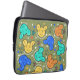 Um design de flor abstrato mandala, arrojado e vibrante, que apresenta formas pétalas geométricas em tons vermelho e roxo, num fundo preto. Perfeito para aqueles que amam arte boêmica, tribal e inspirada na etnia. Excelente por autocolantes, arte em parede, roupa e decoração doméstica.