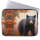 Capa Para Notebook Urso Negro em flores laranja