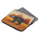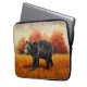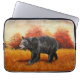 Um Urso Negro giro dando uma volta por um campo de folhagem clara de cor de queda.