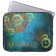 Rodas e engrenagens Steampunk enferrujadas contra fundo azul verdiris vibrante. Personalize com seu nome ou dê como presente.