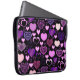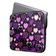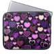 Este padrão apresenta vários estilos diferentes de corações em tons de roxo e rosa em um fundo preto. Veja todos os produtos correspondentes na nossa Loja.
