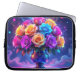 A luminism image of a vibrant bouquet of roses arranged in a stunning, ornate vase, bursting with surreal neon colors and glowing gradients. The petals shimmer in electric oranges, pinks, purples, and blues, with swirling patterns and luminous highlights. The vase reflects a kaleidoscope of colors, surrounded by a soft mist of iridescent light and abstract shapes. An AI generated image created from the imagination of it's creator, me!
