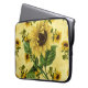 O caso colorido apresenta grande ilustração de girassol vintage sobre o fundo de girassóis menores