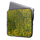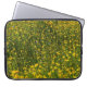 Uma foto de uma cama de margaridas amarelas há também alguns cornflower azuis.