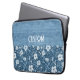 Personalizado elegante azul botânico preto denim parece meio bolsa de laptop. Lindo padrão floral com textura falsa, aparência moderna de denim. design bonito disponível para transferência para outros produtos para uma aparência de mistura e correspondência. Solicitações e ajuda disponíveis via bate-papo zazzle. Meia Coleção.