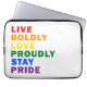 Live Bolly Love orgulhosamente Keep Pride Eletrônicos Bag Laptop Design na tipografia moderna que lê "LIVE BOLDLY LOVE ORGULHO MANTENHA ORGULHO" em um design minimalista simples e limpo. Design simples no arco-íris do Orgulho que funciona excelente para qualquer um.