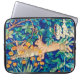 Bolsa de laptop em uma ilustração William Morris de duas lebres correndo por um cenário de floresta selvagem - melhorada digitalmente e colorida
