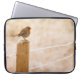 Design apresenta uma fotografia de um belo pássaro vermelho-assado-assado num poste de feno.