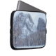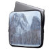 A imagem mostra uma impressionante cena de inverno com duas torres de montanhas com capa de neve dominando o fundo. As montanhas são uma visão majestosa, suas superfícies rochosas cobertas por uma espessa camada de neve branca pristina. No primeiro plano, um aglomerado de árvores nuas é alto, seus ramos enfeitados com uma delicada poeira de neve.