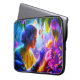 A personalized laptop sleeve of woman botanist, working on her task of examining a yellow flower.