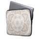 Esta mandala branca senta-se sobre um fundo castanho-claro ou castanho-claro. A cor é macia e natural. Em algumas luzes pode parecer uma cinza quente. Parte da Coleção Bardh Mandala.