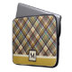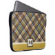 Este saco de laptop de estilo padrão de xadrez esportivo será um dos seus favoritos para ele ou para ela. Criado em dois padrões de tons, principalmente de cores castanhas e ouros bronzeadas. Apenas personalize o texto do monograma no editor fácil do Zazzle.