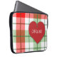 Uma bolsa de laptop construída com cores do Natal, um teste padrão vermelho e verde da xadrez e um Tag do coração. Personalize a bolsa de laptop com seu nome ou seu próprio texto entre outras opções.