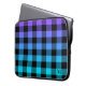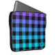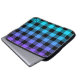 Capa Para Notebook Xadrez preta sobre o ombro roxo e turquesa