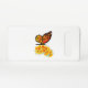 Borboleta de monarca laranja com asa decorada com papoila amarela e vibrante da Califórnia em fundo branco.