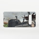 Gatinho no Parque ao longo da bancada de ferro e lixo. Gato Preto. Ferro preto e gato preto. Por frontiernow.com