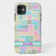 Padrão de blocos constituído por quadrados geométricos luminosos coloridos As cores incluem verde claro, azul, roxo, amarelo vermelho e rosa. Resultando em um design abstrato, brilhante e alegre que parece excelente em qualquer produto. O texto está cor-de-rosa e é facilmente personalizado para o nome ou a mensagem de sua escolha.