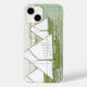 Uma capas de iphone com trabalho de arte de navegação náutica de azulejos antigos mostra veleiros em águas calmas em tons pastéis de verdes e rosa.