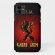 capas de iphone "Carpe Diem" com Leão preto e vermelho. "Agarre o dia". Personalize este caso com seu nome ou iniciais. Griffon mitológico sobre fundo vermelho e preto.